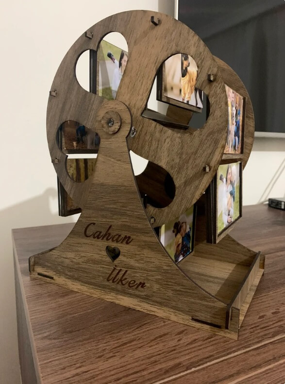 The Wooden Ferris Wheel is a stylish and decorative gift perfect for special occasions like Valentine’s Day, Mother’s Day, Father’s Day, or birthdays. It can be personalized by adding a name, poem, or note on the side, making it a thoughtful keepsake for loved ones. The product measures 10.5 x 9.5 inches (26 cm x 23 cm), making it an attractive addition to any home décor.