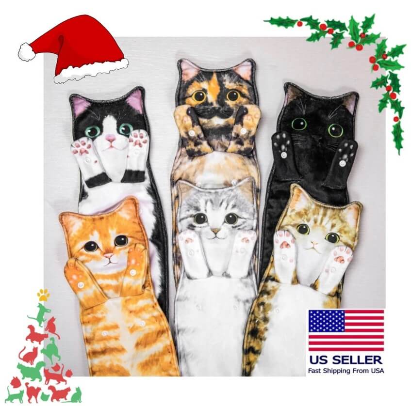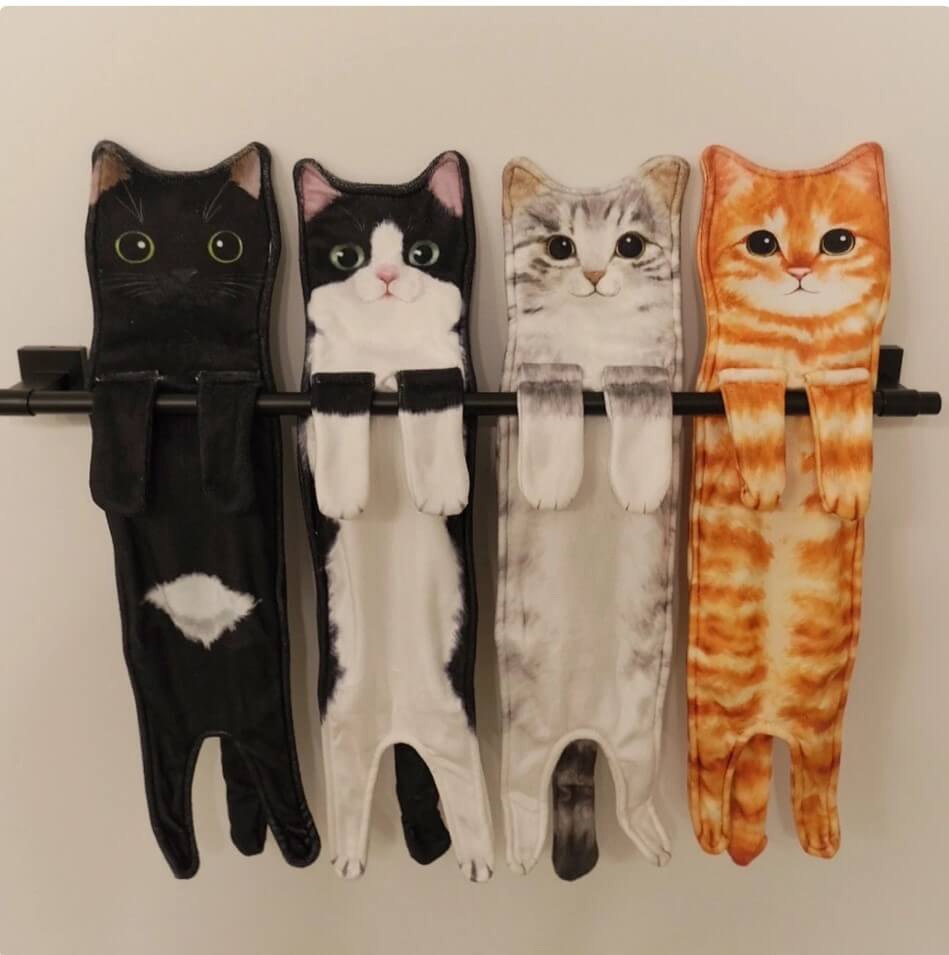 These funny hanging cat towels are perfect for cat lovers, featuring a snap button to prevent slipping and a soft fabric that feels like touching a cat’s belly. Measuring 25 inches by 6 inches, they add a playful touch to bathroom and kitchen decor.