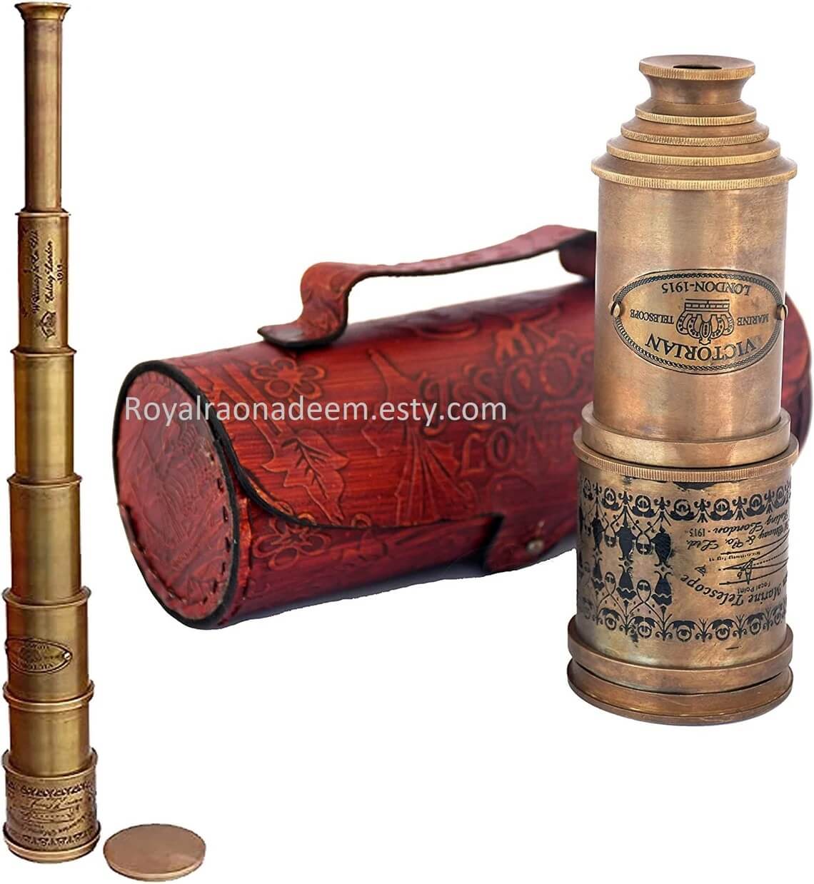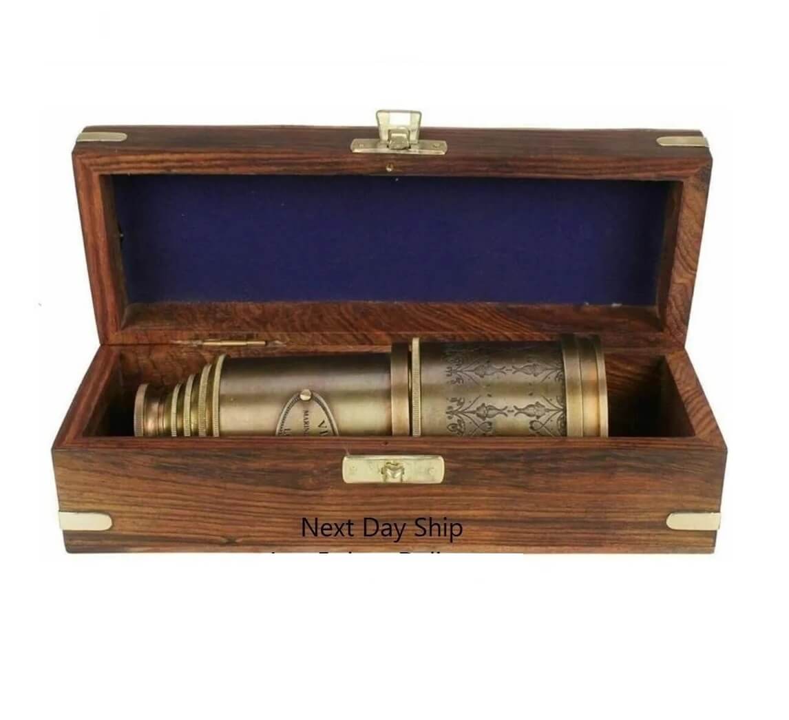 Explore in style with this Personalized Antique Style Telescope, crafted from solid brass with an antique finish. It comes with a choice of a leather case or an engraved wooden box. Personalize the telescope with engravings on its sides and the wooden box for a unique touch.