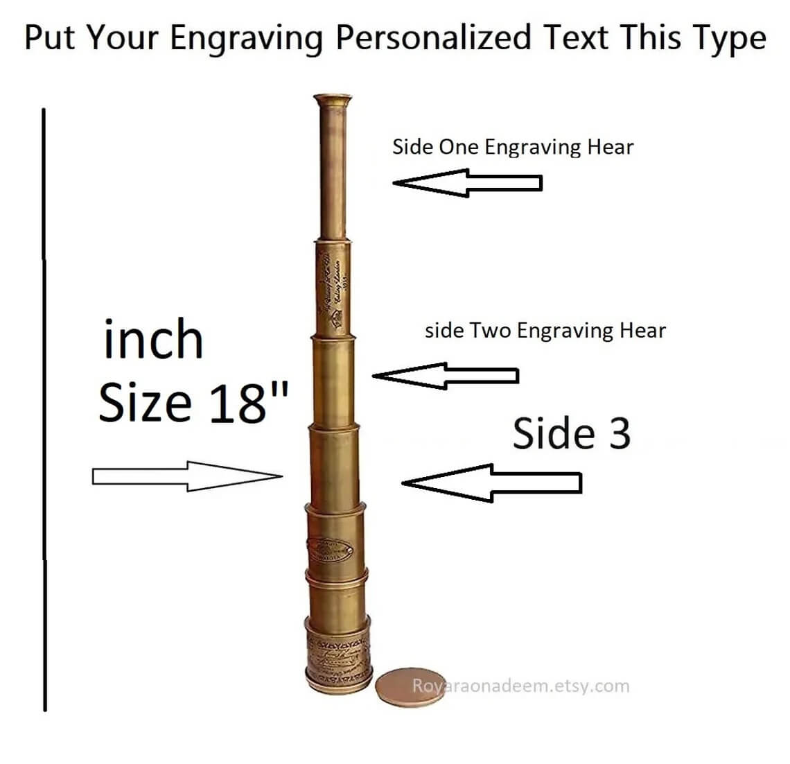 Personalized vintage-style engraved telescope.